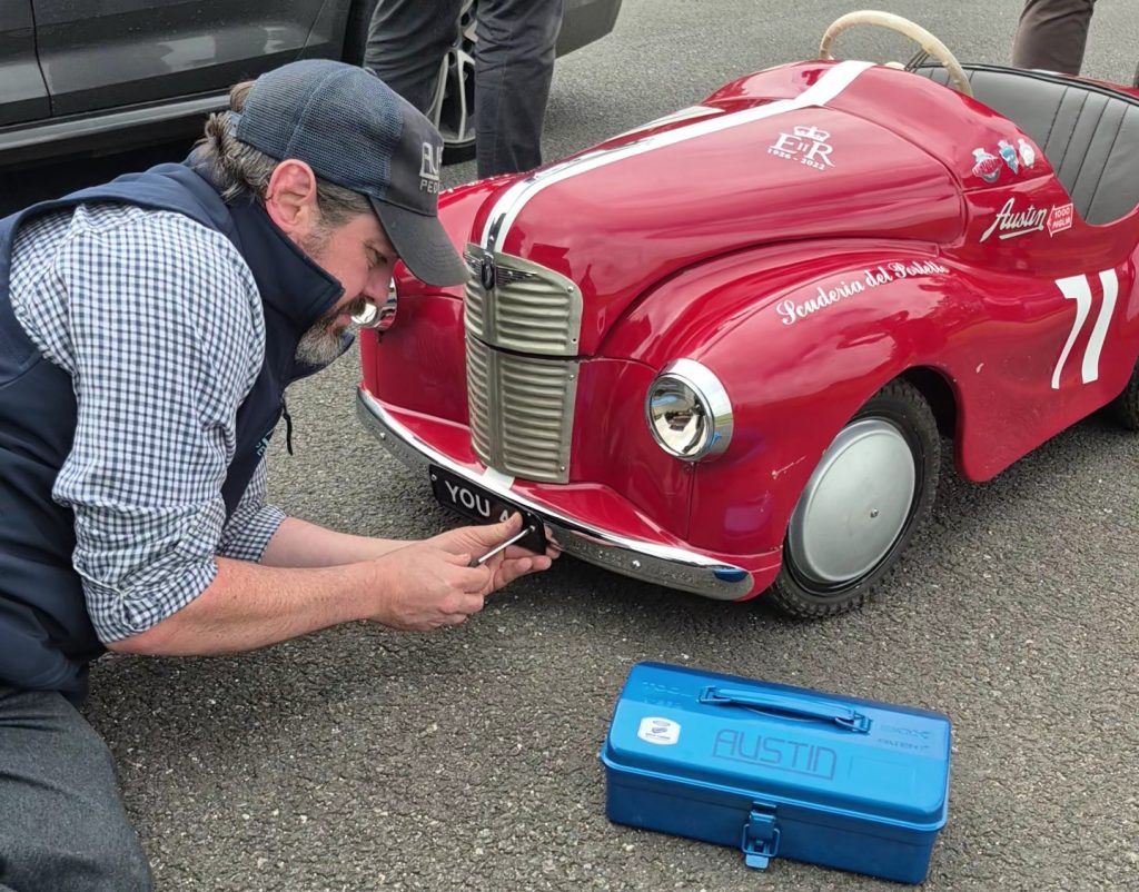 Once completed to the very highest standards by our pedal car restoration experts, we delivered the pedal car - in pristine condition - to the track on the morning of the lap record at Goodwood, finally fitting the brand new bumpers and numberplates as the cherry on top!