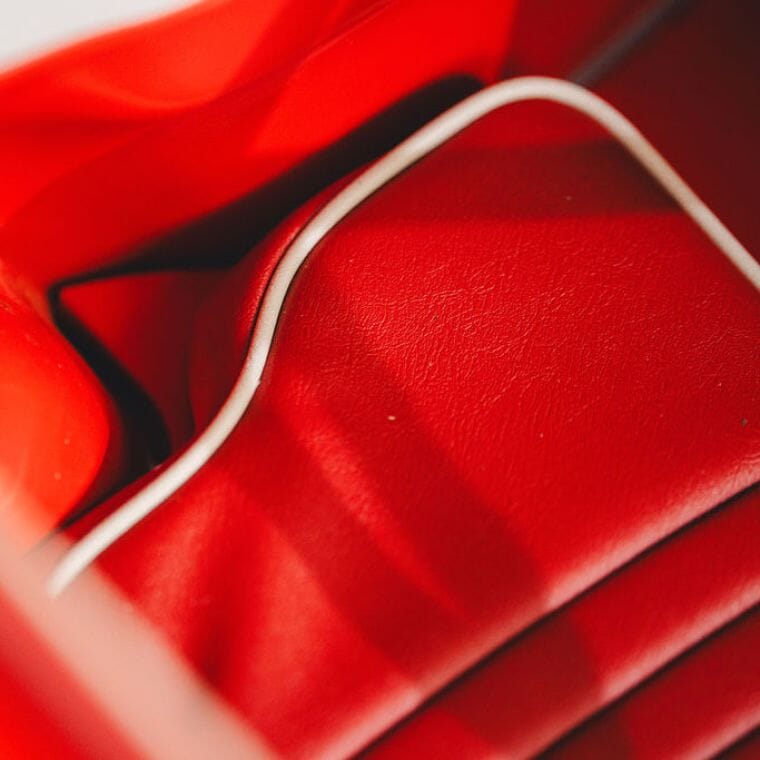 The striking red paint is complemented by luxurious cream wheels and gorgeous red and white upholstery that completes the wonderful harmonisation of this truly eye-catching car.